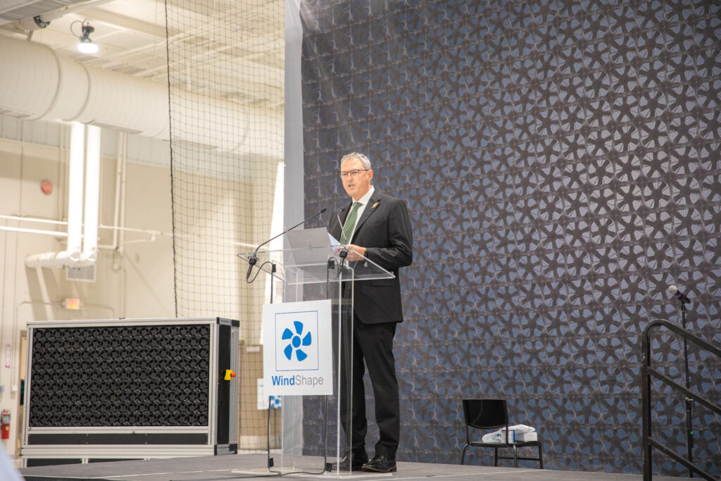 - Osage LLC CEO Russell Goff delivers remarks at the WindShape ribbon-cutting ceremony.
